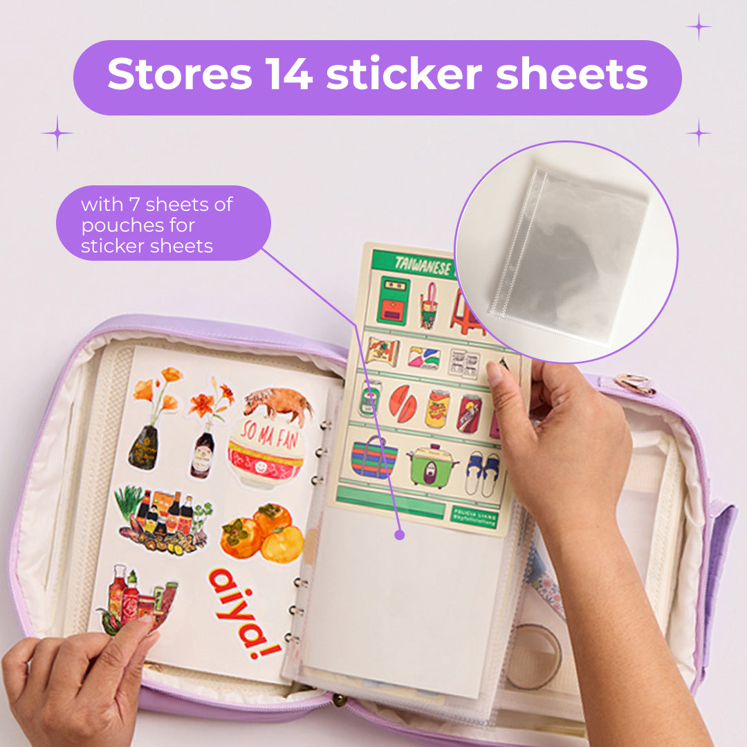 • Store 14 sticker sheets with 7 sheets of pouches for sticker sheets