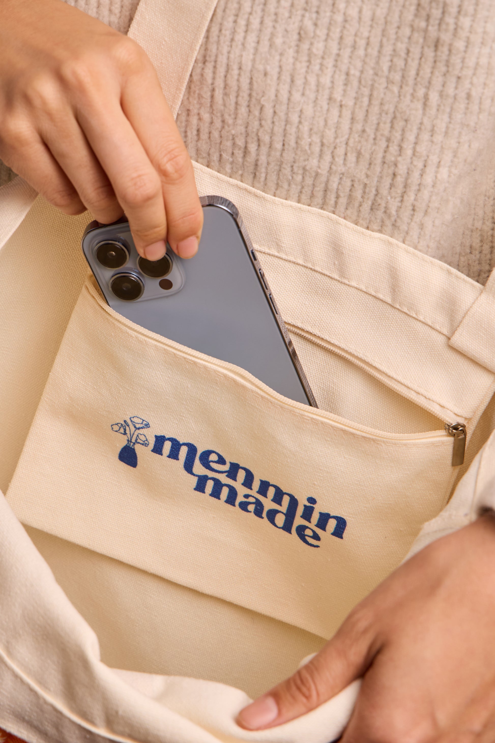Gorgeous tote and practical, too, with the zippered pouch. At first, I didn't like the long handles since I'm petite, but I realized later on that they help if you have a lot of stuff in the bag. Very happy with the purchase and the ability to support a small Asian-owned business!