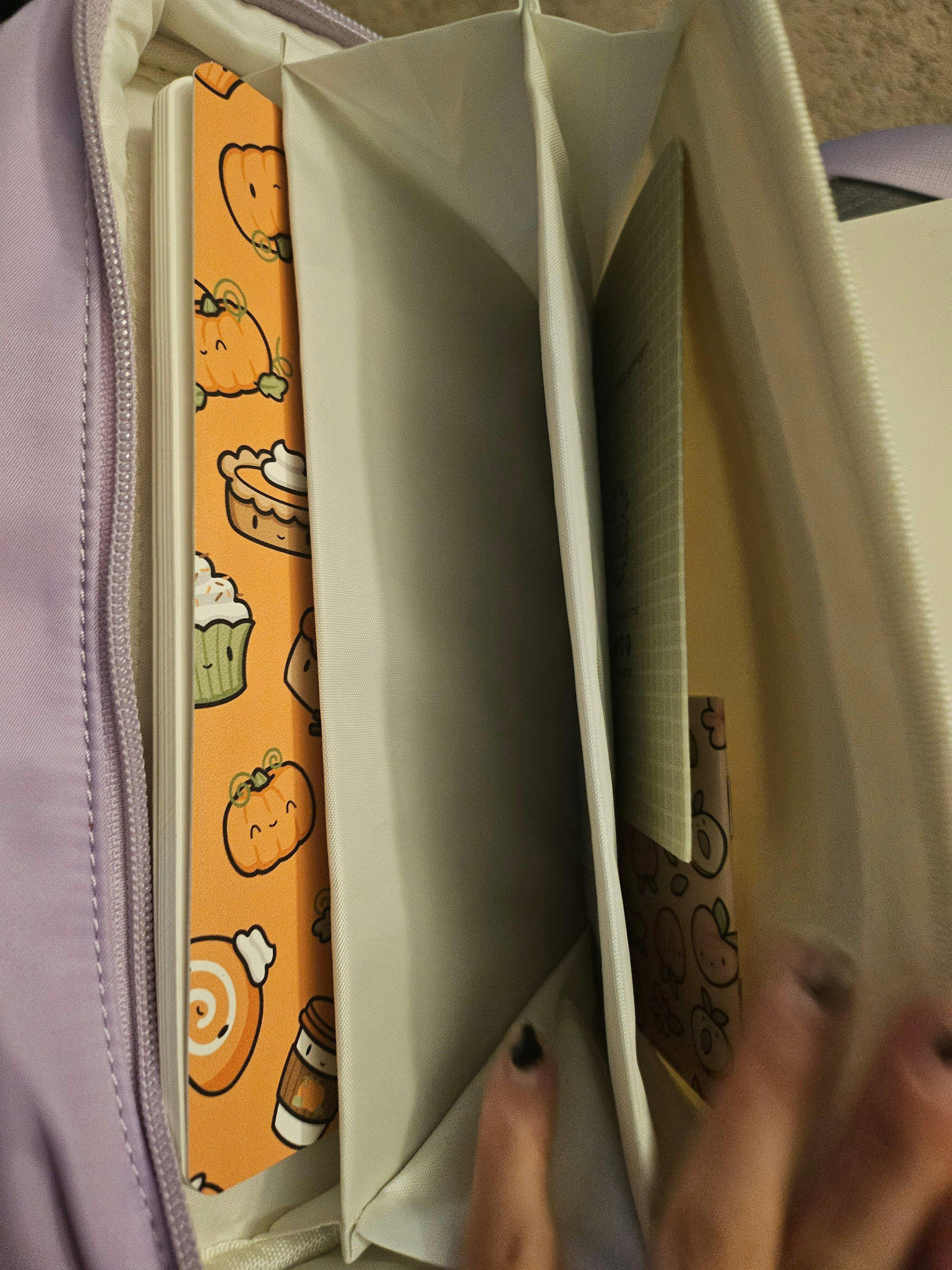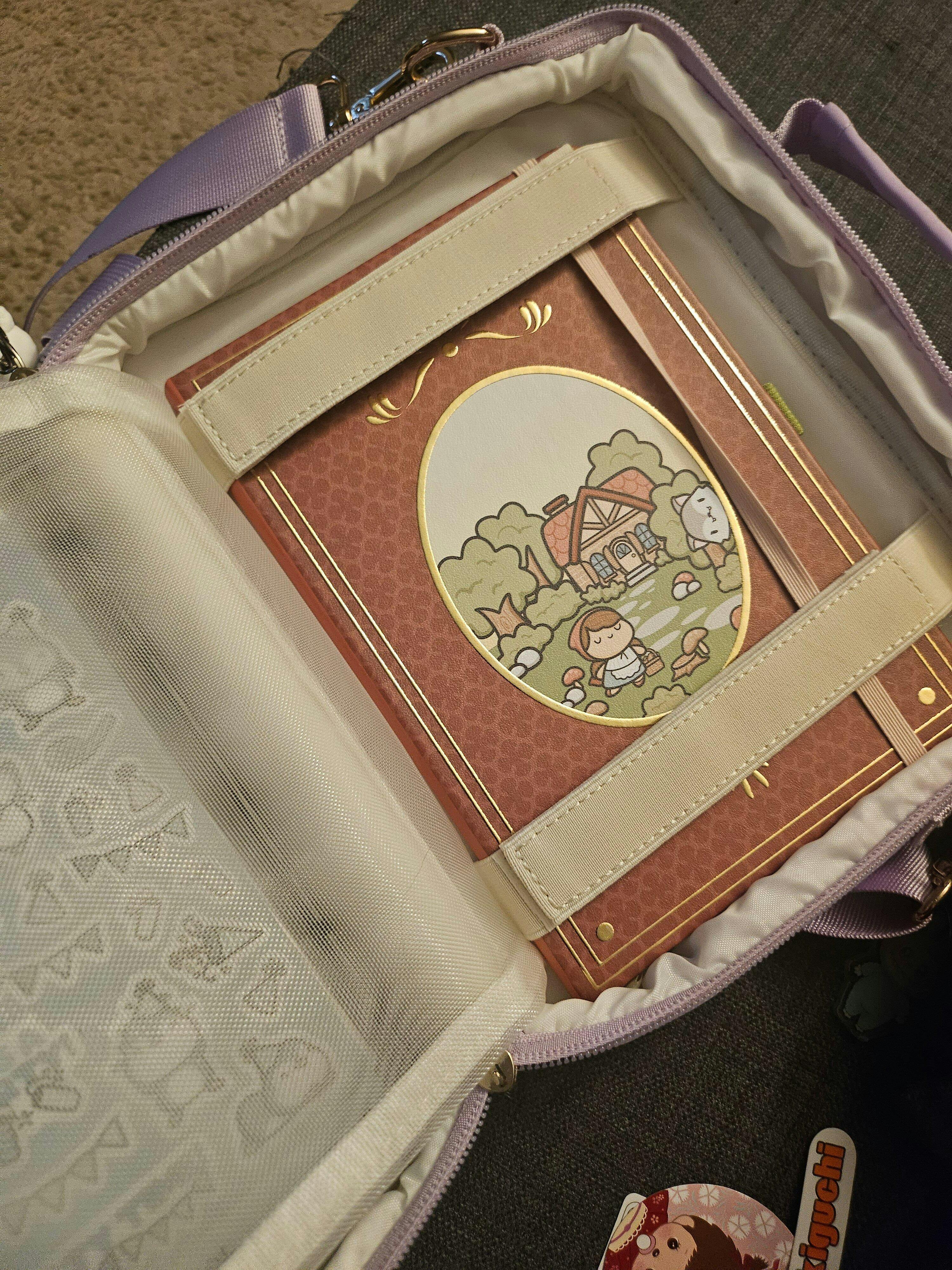 This bag is such a unique & very smart idea. It has everything you need to store all your journals, stickers, supplies, etc. I recently subscribed to Hubman & Chubgirl (a stickers & planners company) and was having trouble figures out where to store my sheets as I was using them. This bag is perfect, especially on the go. My only wish is you have the opportunity to make it in more colours. Lavender worked for ne but I wouldn't have minded green or black. The ita feature in the front pocket was a great addition too. Im all about bags that show off my nerdiness but is practical too. Thank you. This bag is awesome!